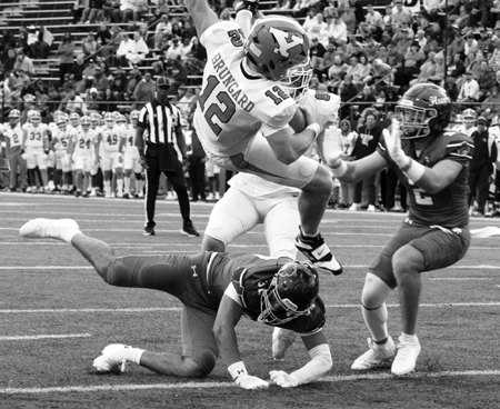 There’s also Ryan Mitchell, a 6-0, 190 lb. junior at the tailback post; Vic Dimargio, 6-1, 190 lbs. at fullback, and H-backs will be a pair of seniors in Alex Battaglia, 5-10, 165-lbs. and Ray Vodhanel, at 5-10, 165 lbs.